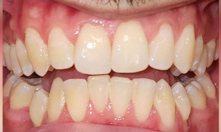 This patient came to us with some front teeth crowding, which was fixed with an Invisalign treatment. This gradually aligned the teeth leading to a straighter and more harmonious smile.